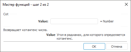 Value. Угол в радианах, для которого определяется котангенс. Котангенс имеет точки разрыва: 0о, ± 180о,± 360о,...