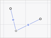 В веб-приложении после создания прямой линии/стрелки в её центре отображается дополнительная точка, позволяющая создать ломаную линию. Для этого перетащите дополнительную точку, расположенную в центре линии, в другое место рабочей области при необходимости создания ломаной линии. Дополнительные точки отображаются на каждом новом линейном участке: