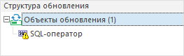 При открытии обновления может быть не найдена база данных у SQL-оператора, указанная в соединении при установленном флажке «Использовать другое соединение». В этом случае около оператора будет отображена измененная пиктограмма: