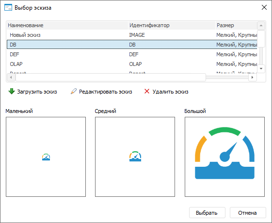 будет открыто окно «Выбор эскиза»: