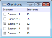Если свойству установлено значение True, то рядом с элементами компонента будут располагаться флажки. По умолчанию свойству установлено значение False, при этом флажки не отображаются.
