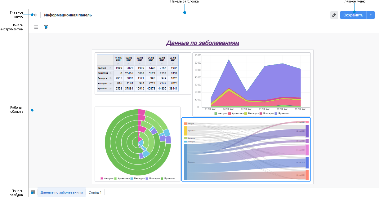 Для работы с готовой информационной панелью смотрите статью «Работа с готовой информационной панелью».