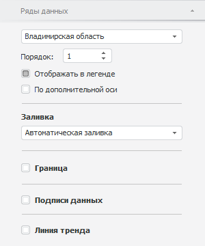 Вкладка «Ряды данных» расположена на боковой панели и предназначена для настройки формата ряда данных.