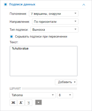 Для отображения подписей данных установите флажок «Подписи данных» и выполните следующие настройки:
