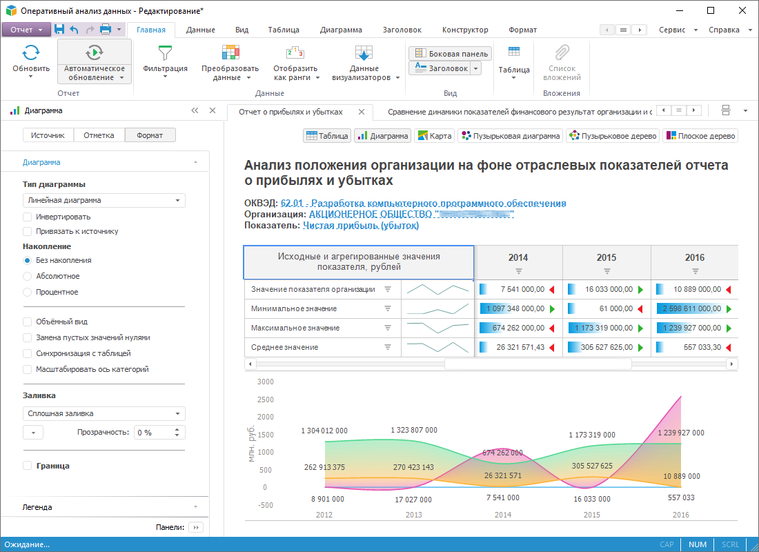 Инструмент «Аналитические запросы (OLAP)» для оперативного просмотра и анализа данных «на лету» с отображением данных средствами деловой графики.