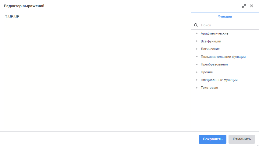 Окно редактора выражения для задания формулы отношения в веб-приложении имеет вид: