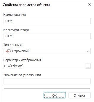 На странице «Параметры» задаётся список параметров объекта. Параметры позволяют формировать содержимое объекта динамически.