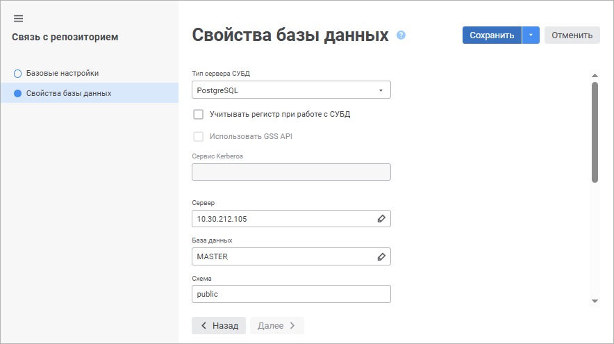 После выполнения одного из действий будет открыт мастер связи с репозиторием.