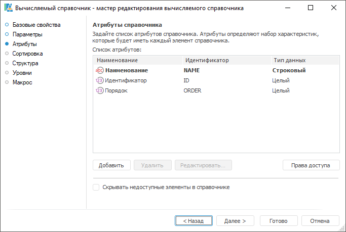 Сортировка. Определяется набор и порядок атрибутов, по которым будет производиться сортировка элементов справочника;