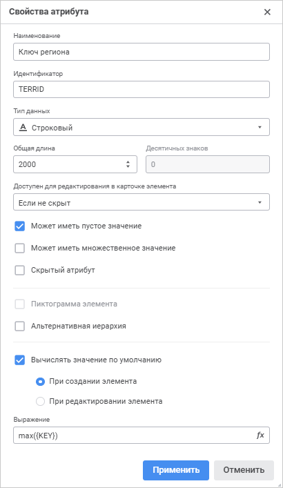 Примечание. Вычисляемое значение недоступно для изменения при редактировании элемента справочника.