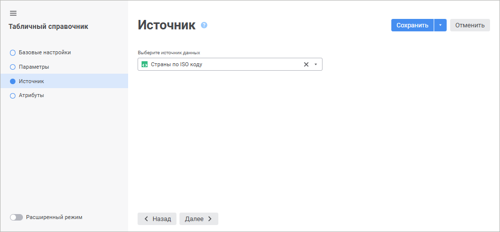 в расширенном режиме пользователь самостоятельно формирует структуру и указывает один или несколько источников справочника.