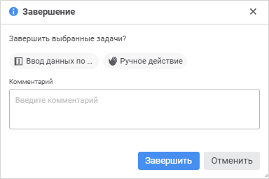 Откроется окно подтверждения завершения шага, в котором при необходимости введите пояснения в поле «Комментарий»: