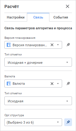 Выберите значение параметра алгоритма расчёта, прикрепленного к шагу процесса. Доступна множественная отметка.