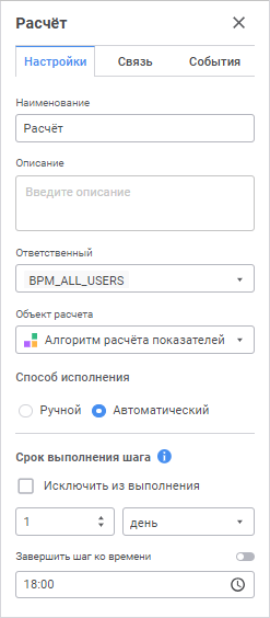 Автоматический. Расчёт выполняется автоматически после завершения предыдущего шага. Завершение шага также происходит автоматическим образом.