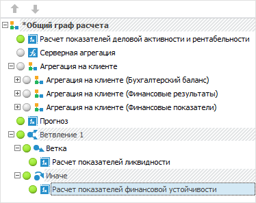 После добавления и настройки параметров алгоритма расчёта можно настроить условия выполнения алгоритма расчёта с помощью ветвлений. Ветвления используются для создания условий выполнения отдельных элементов алгоритма расчёта.