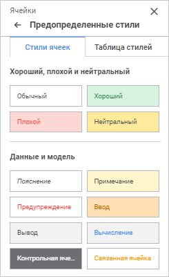 Предопределённые стили. Позволяет применить стандартные стили ячеек или стили из подключенной таблицы стилей.