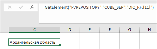 С помощью формул можно добавить отдельные значения или элементы измерений из куба в выбранную ячейку на листе рабочей книги.