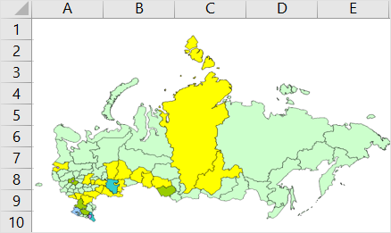 Карта создается на отдельном листе в книге Microsoft Excel. Лист с картой вставляется после активного листа рабочей книги Microsoft Excel.