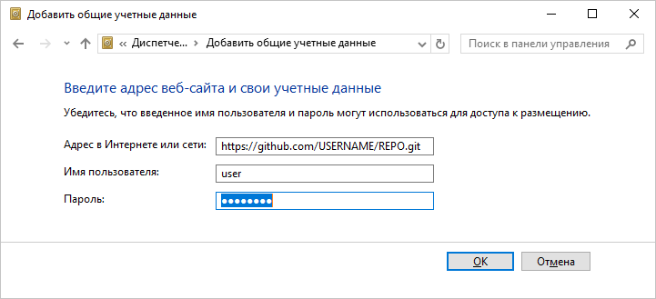 доступа при подключении к Git-репозиторию или во время получения последней