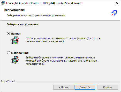 Запустите один из инсталляторов, входящих в комплект поставки продукта «Форсайт. Аналитическая платформа»: