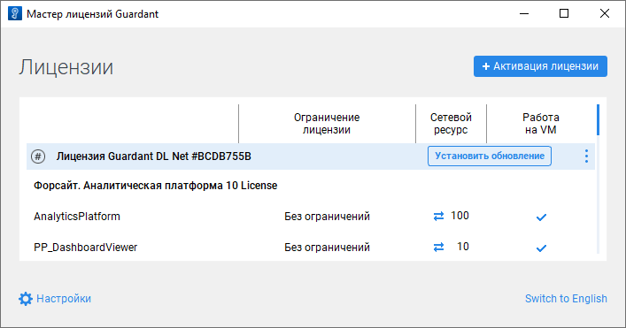 Лицензия доступна для обновления в мастере лицензий Guardant в графическом или консольном режиме.