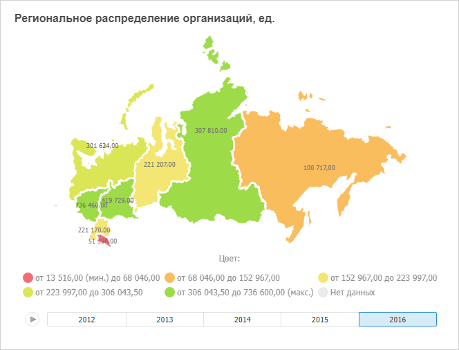 Для визуализатора «Карта» доступны все операции с объектами, приведенные в разделах «Построение аналитической панели» и «Вставка и настройка визуализаторов».