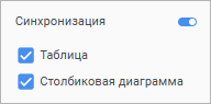 Примечание. Синхронизация доступна для визуализаторов, имеющих измерения, у которых совпадают идентификаторы/наименования.
