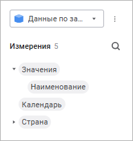 Если в качестве источника данных выбран стандартный куб, то для настройки визуализации данных доступна область «Измерения» на боковой панели: