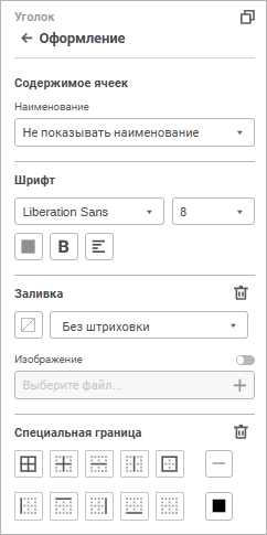 В результате выполнения действий будет настроено содержимое уголка таблицы.