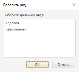 Если при сохранении нового временного ряда не заданы значения всех обязательных атрибутов, то будет отображен диалог «Атрибуты ряда»: