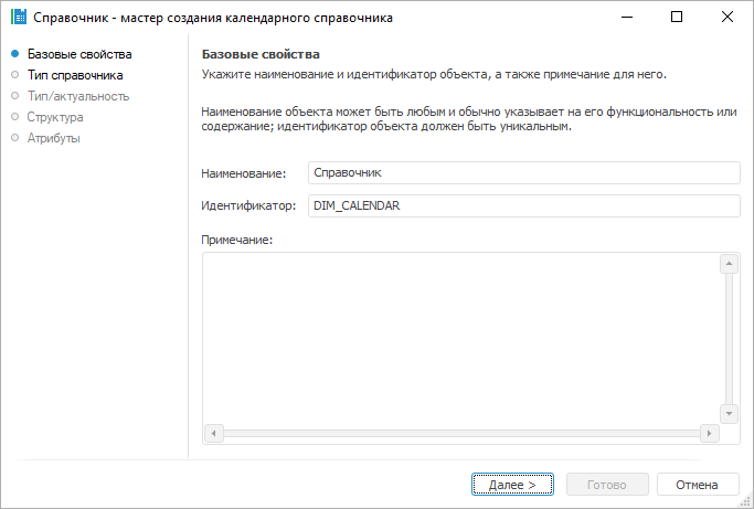 На странице «Базовые настройки» в веб-приложении и «Базовые свойства» в настольном приложении задаются наименование объекта, идентификатор и примечание.