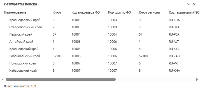 При перемещении по найденным элементам будут выделены соответствующие элементы в списке справочника (при этом отображаются варианты значений атрибутов выделенного элемента).