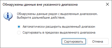 2. Если у выделенного диапазона есть примыкающие данные, будет выдан запрос на расширение выделенного диапазона: