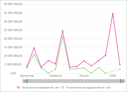 Примечание. Доступно только для линейной, смешанной, точечной, коробчатой, каскадной, ступенчатой диаграмм, гистограммы, диаграммы с областями и коробчатой диаграммы с линейными рядами.