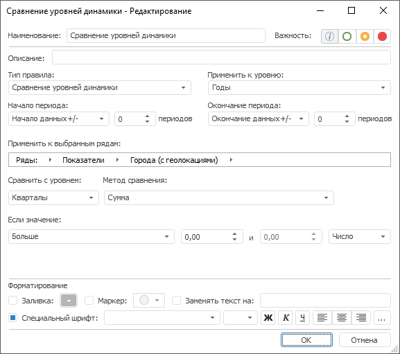 Задайте динамику изменения наблюдений временных рядов между различными уровнями. Используйте группу параметров «Если значение»: