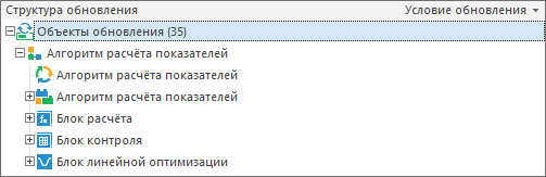 При добавлении в обновление алгоритма расчёта показателей дочерние объекты автоматически добавляются в обновление.