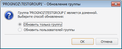 Если среди выделенных обновляемых групп есть доменные с управлением правами на уровне СУБД, то будет выдан диалог: