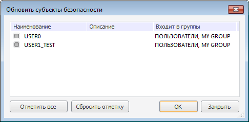 Обновить пользователей группы. Будет сформирован список пользователей, входящих в группу, для последующего их обновления.