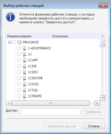 Необходимо отметить флажками те рабочие станции, с которых необходимо запретить/разрешить доступ или для которых необходимо произвести анализ: