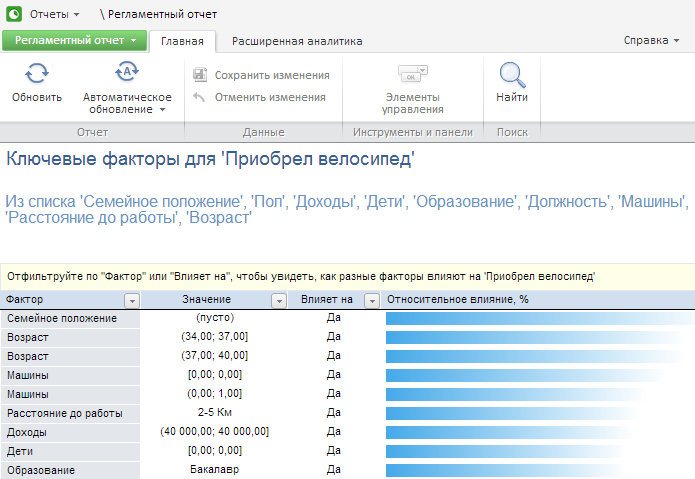 Вид страницы «Результат анализа» зависит от типа выполняемого анализа данных: