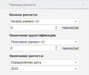 Для настройки периода расчёта метода используйте вкладку «Периоды расчёта» на панели свойств. Набор параметров, определяющих период расчёта вычисляемого ряда, зависит от используемого метода расчёта.