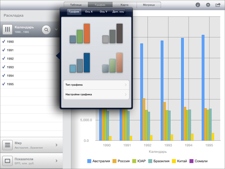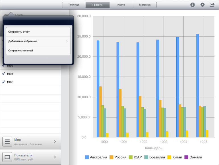Отображение панели действий над отчётом и панели настроек текущего представления данных