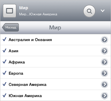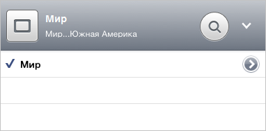 В результате выполнения примера на экране мобильного устройства была отображена панель измерений источника данных. Корневой элемент измерения «Мир» не выделен: