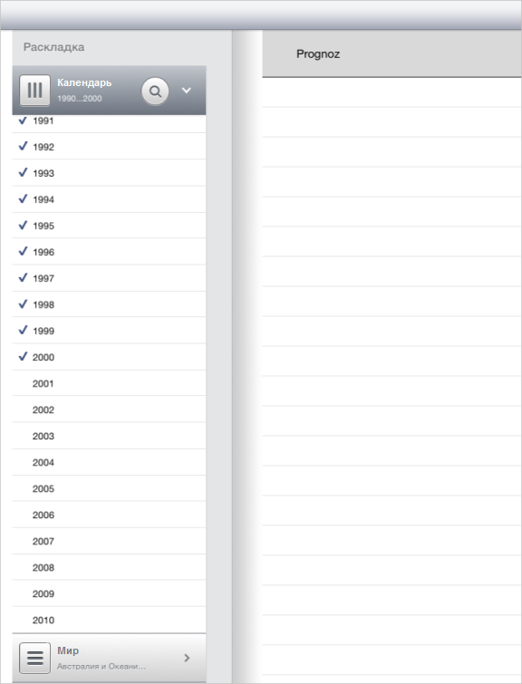 Первое представление смещено вправо на 5% от его размера. В верхней части второго представления отображён заголовок в контейнере с текстом «Prognoz» и с отступом слева, равным 50 пикселям. Заголовок отделяется от второго представления горизонтальной линией чёрного цвета.