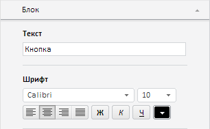Шрифт. Настройте параметры оформления текста кнопки: шрифт, выравнивание, начертание и цвет.