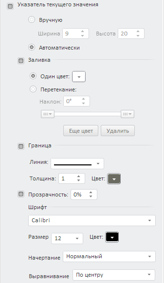 Установите флажок «Указатель текущего значения» и задайте следующие параметры: