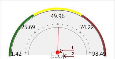 На изображении цифрой «1» отмечен центр вращения, цифрой «2» - указатель текущего значения: