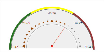 Установите флажок «Динамическая подсветка» и выберите форму делений шкалы для значений, которые меньше текущего значения индикатора. Также задайте следующие параметры делений: