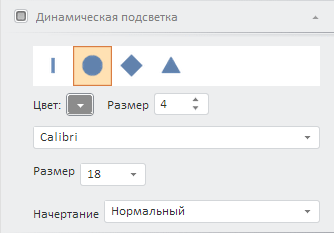 Для настройки динамической подсветки текущего значения, отображаемого индикатором, предназначена вкладка «Динамическая подсветка» на боковой панели.