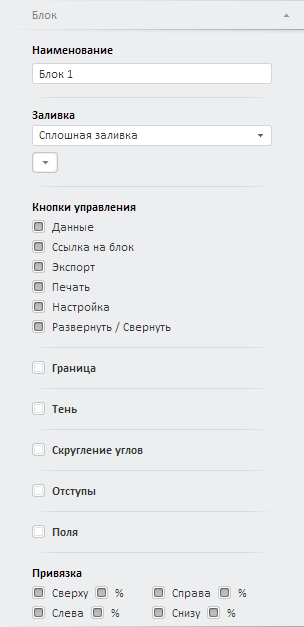 Для настройки базовых параметров объекта используйте вкладку «Блок», расположенную на боковой панели.